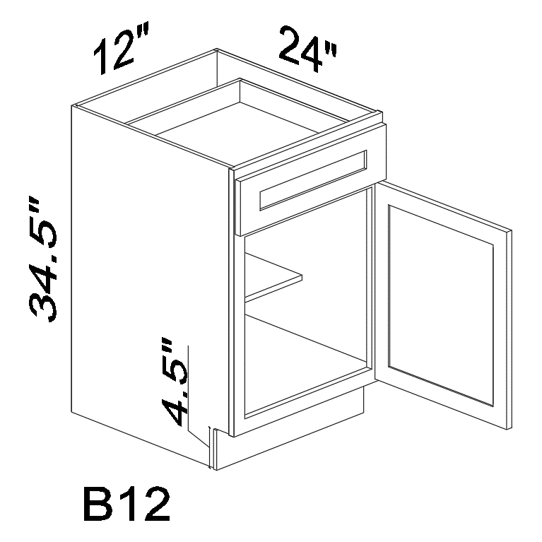 12" Base Cabinet, 1 door, 1 drawer, 1 adjustable shelf